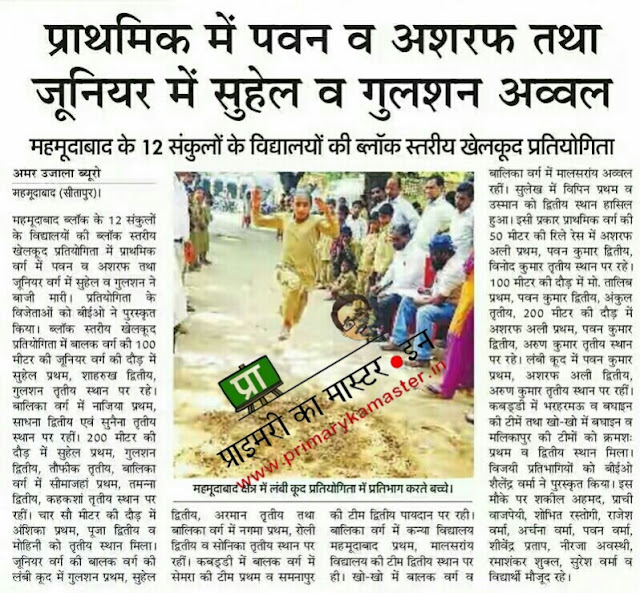 महमूदाबाद के 12 संकुलों के विद्यालयों की ब्लॉक स्तरीय खेलकूद प्रतियोगिता, प्राथमिक में पवन व अशरफ, जूनियर में सुहेल व गुलशन अव्वल