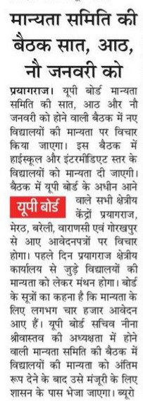यूपीबोर्ड : यूपी के माध्यमिक कॉलेजों को जल्द ही मिलेगी मान्यता, पिछले वर्ष हो चुके हैं ऑनलाइन आवेदन, शासन को भेजा जाएगा प्रस्ताव, अनुमोदन मिलने पर मान्यता का पत्र किया जाएगा निर्गत।